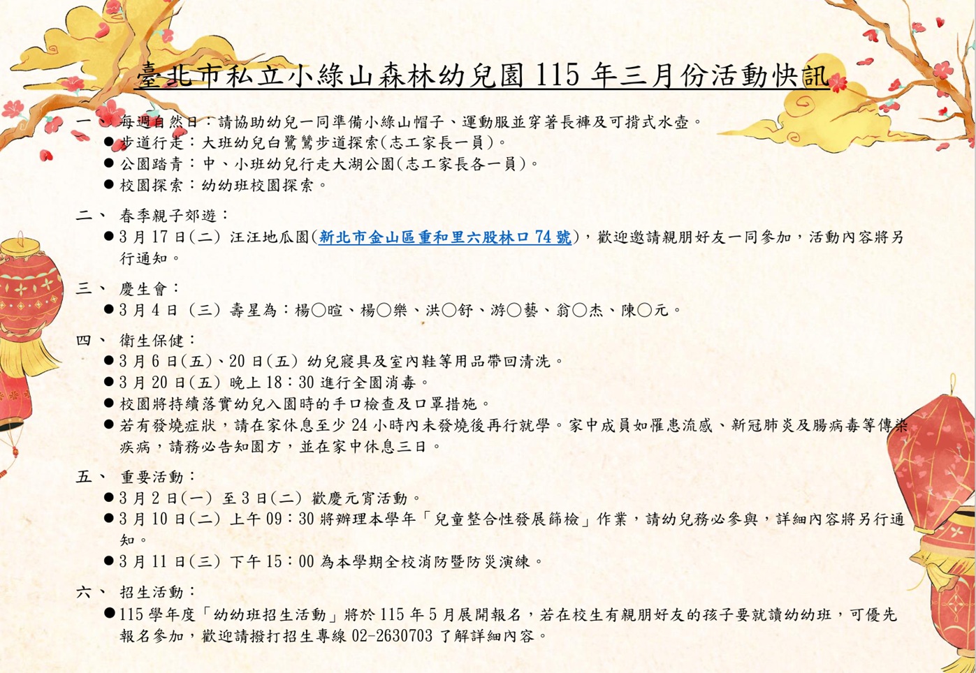 公告115年三月份活動快訊,請自行下載參用。