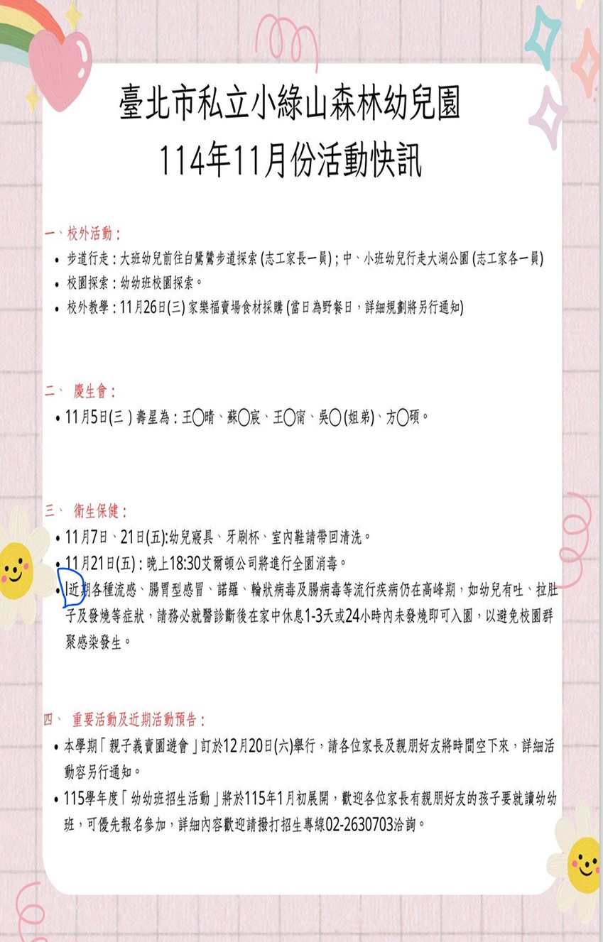 114年11月份活動快訊,請自行下載參用!