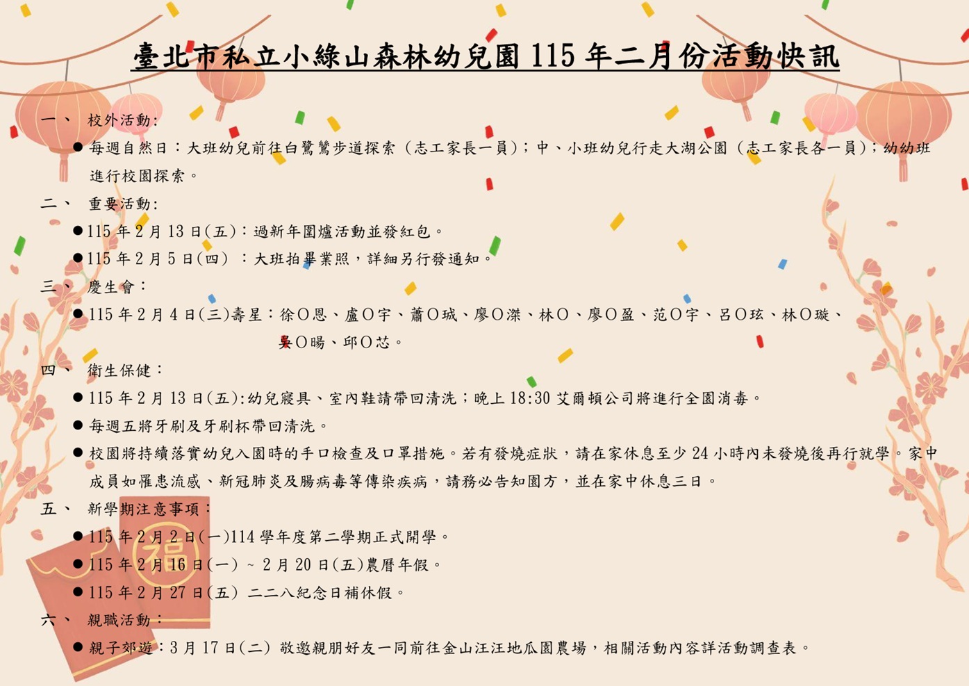 公告115年二月份活動快訊,請自行下載參用!
